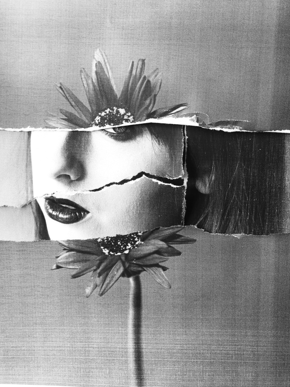 Ripping up the images and putting them back together is a representation of how it feels living with mental health – falling apart whilst trying to hold it together. The overlaying of the flower images not only shows the role nature plays with helping with mental health, but acts as a symbolism, representing what it is like to live with a mental illness.