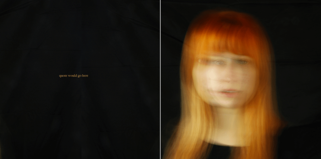 The image above shows what will appear on the first page. I want the quote to stand alone with no other images and as soon as the viewer opens the book, be introduced to what they are about to see. The use of negative space around the quote is something that I once again want to be a recurring theme, with it appearing throughout my images.